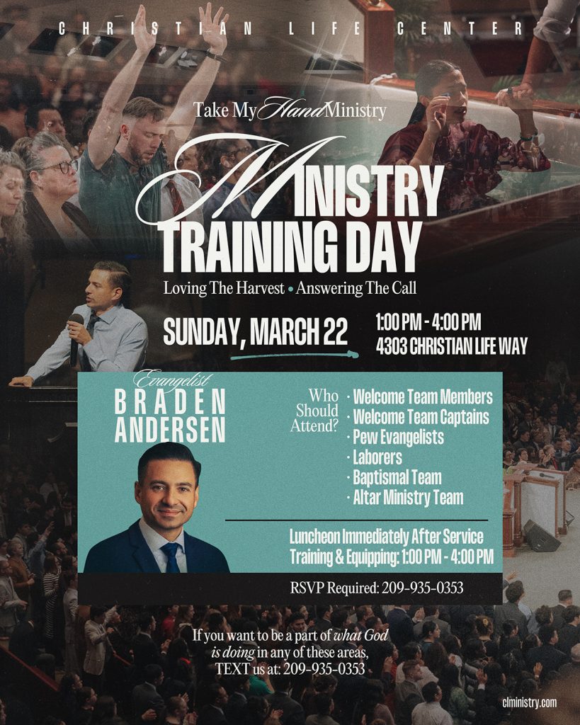 Get involved and join us for an empowering Ministry Training Day with Evangelist Braden Andersen. Designed to equip and prepare us for reaping the harvest God is sending to CLC!